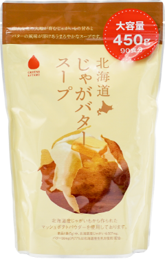 広大な北の大地が育むじゃがいもの甘みとバターの風味が溶けあう、まろやかなスープです。北海道産じゃがいもから作られた、マッシュポテトパウダーを使用しています。